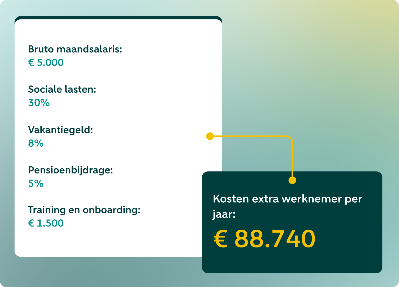 Met onze FTE-kosten calculator heb je direct inzichtelijk wat jij kwijt bent aan je nieuwe teamlid.